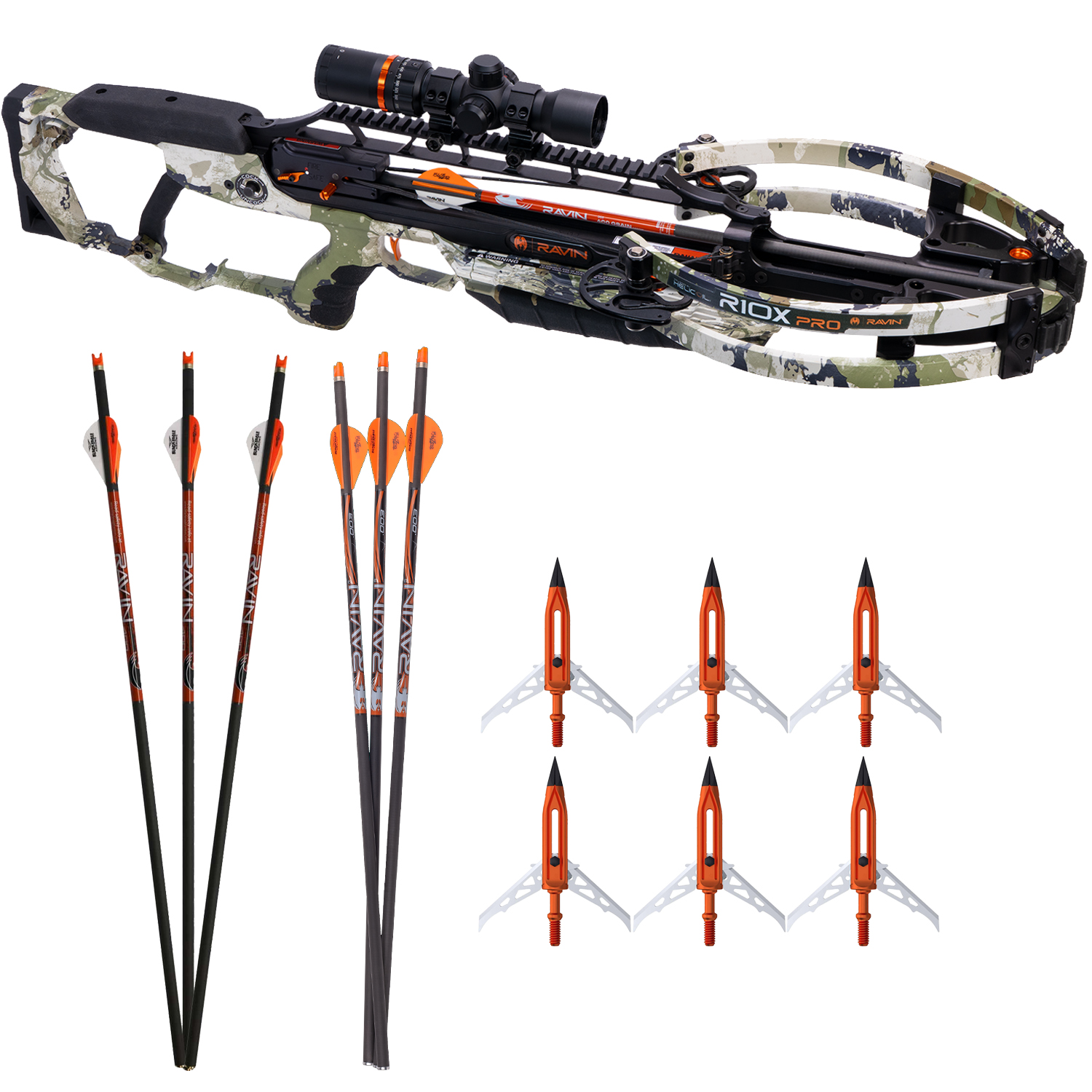 Bonus: Includes a FREE 3-pack of Ravin .003 Lighted Arrows and a 6-pack of Ravin Broadheads R102!